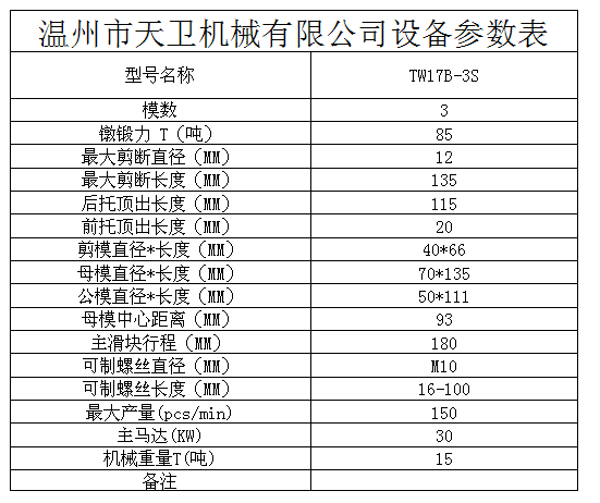 您當(dāng)前的位置:首頁 / 產(chǎn)品中心 / 三模三沖冷鐓機 / └ TW17B(M10)多工位冷鐓機 / TW17B-3S全自動多工位冷鐓機