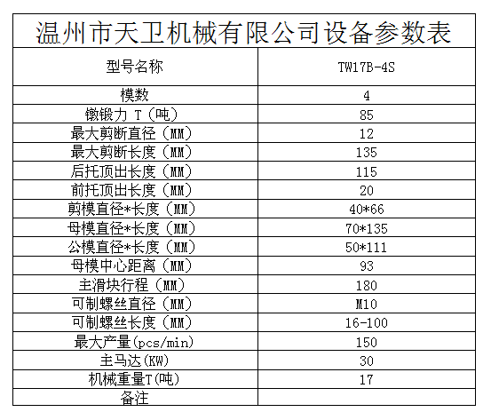 您當(dāng)前的位置:首頁(yè) / 產(chǎn)品中心 / 四模四沖冷鐓機(jī) / └ TW17B(M10)冷鐓機(jī) / TW17B-4S全自動(dòng)多工位冷鐓機(jī)